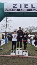 Bei moderatem Wetter ging es zum Jahresende wieder mit Hunderten anderen Athlet*Innen über die Strecken von und zum Weserwehr. Für Justus ging es diesmal über die kürzere 5 km Strecke. Er fühlte sich gut und konnte trotz leichtem Regen, Kälte und Wind die gute Leistung der letzten Wochen abrufen. Heraus kam der 3. Platz (gesamt) und der 1. Platz MU18 in 17:20. Herzlichen Glückwunsch Justus!